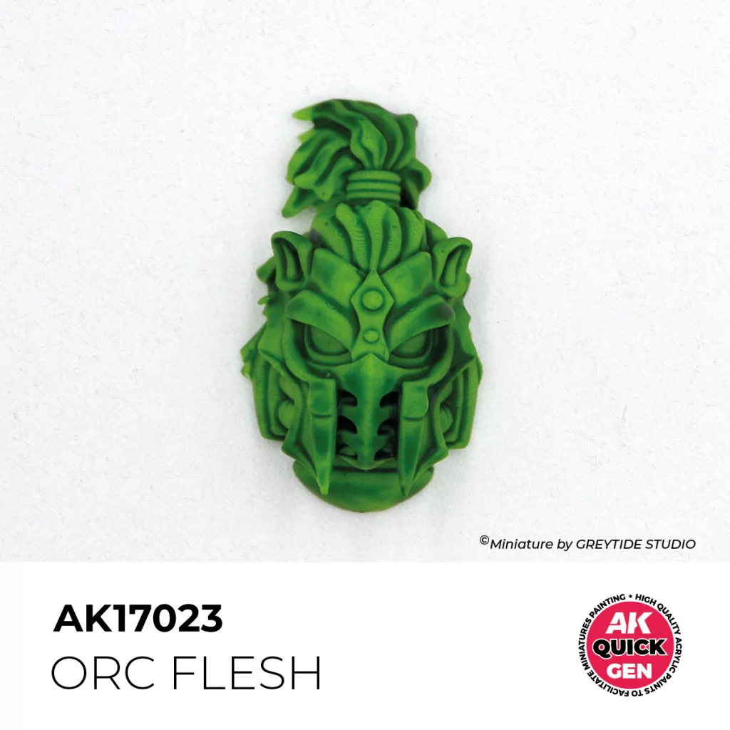Az Orc Flesh egy erőteljes, közepes natúr-zöld‑bajszos tónus, amely tökéletesen illik orkok, gnollok vagy egyéb fantasy karakterek bőrének festéséhez. A Quick Gen sorozatban használt egylépcsős kontraszttechnika lehetővé teszi, hogy fehér alapozás után egyetlen réteg festék elegendő legyen az árnyékok, fények és részletek kiemelésére. A festék gyorsan szárad, simán terül, és közöttük kialakuló természetes tónuseltérések hoznak valódi mélységet.