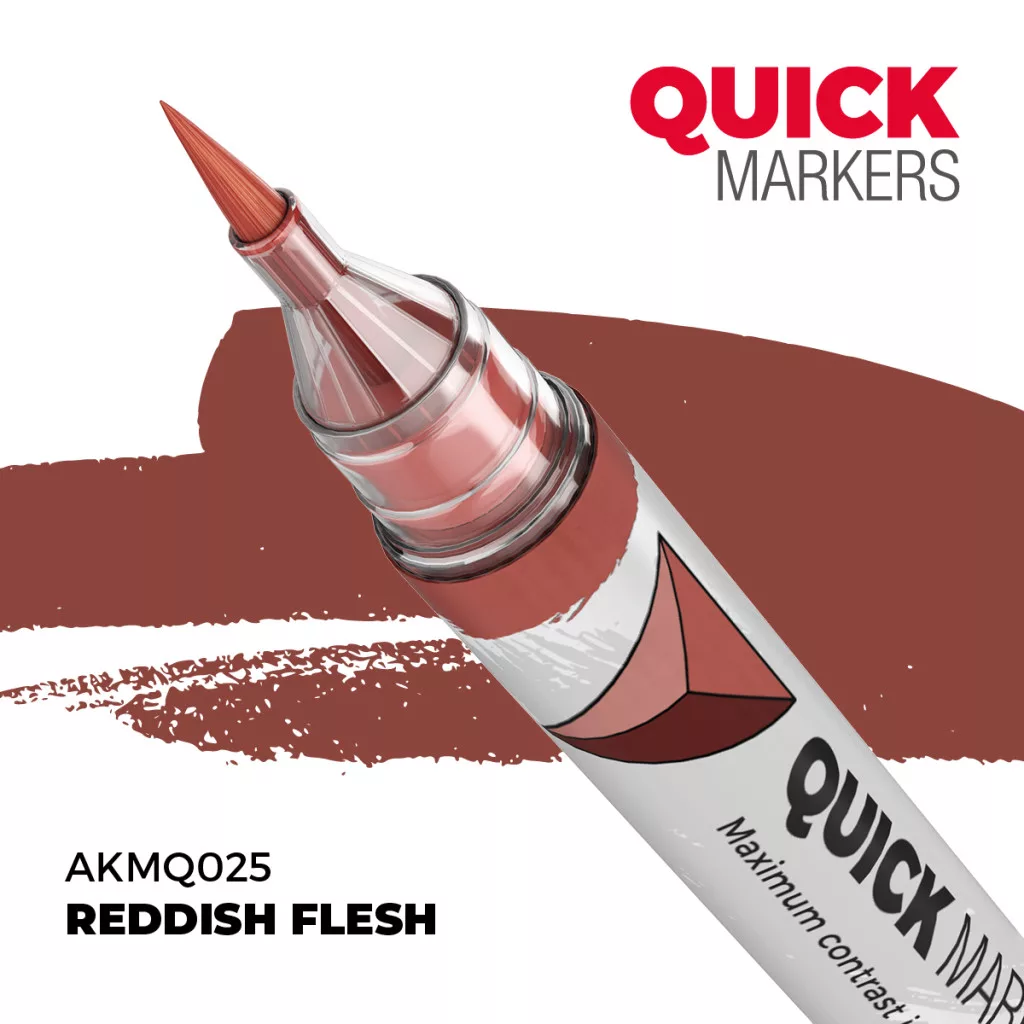 Az AK Interactive Reddish Flesh – Quick Marker egy speciálisan makettezőknek és miniatűrfestőknek fejlesztett festékmarker, amely gyors és precíz színezést tesz lehetővé. A Reddish Flesh egy meleg tónusú, enyhén vöröses bőrszín árnyalat, amely tökéletes választás karakterek bőréhez, arcokhoz, izomtónusokhoz és természetes, élő hatású részletek kialakításához.