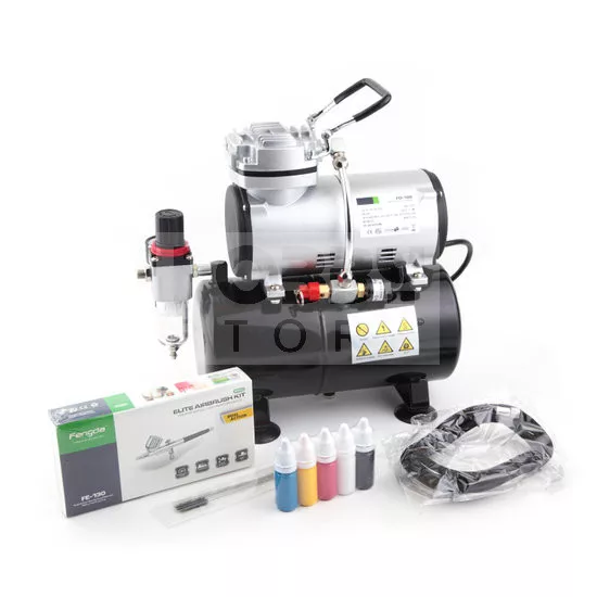 Egy dugattyús olajmentes mini kompresszor airbrush (szórópisztoly) technikákhoz. A Fengda FD-186 mini csendes kompresszor rendelkezik egy kimeneti nyomásszabályzóval ami levegőszűrővel és és nyomásmérő órával van ellátva. A nyomásszabályzó leeresztő szelleppel is el van látva. Csendes (47 dB / 1m), így lakótérben is használható kényelmesen. Kis súlyának köszönhetően könnyen hordozható. A kompresszor nagyon népszerű a makettezők, műkörömépítők és a testfestők körében.