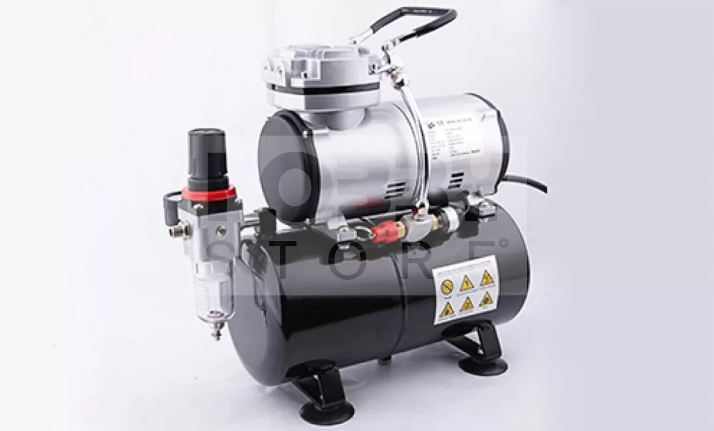 Egy dugattyús olajmentes mini kompresszor airbrush (szórópisztoly) technikákhoz. A Fengda FD-186 mini csendes-levegőtartályos kompresszor rendelkezik egy kimeneti nyomásszabályzóval ami levegőszűrővel és és nyomásmérő órával van ellátva. A nyomásszabályzó leeresztő szelleppel is el van látva. Csendes (47 dB / 1m), így lakótérben is használható kényelmesen. Kis súlyának köszönhetően könnyen hordozható. A kompresszor nagyon népszerű a makettezők, műkörömépítők és a testfestők körében.