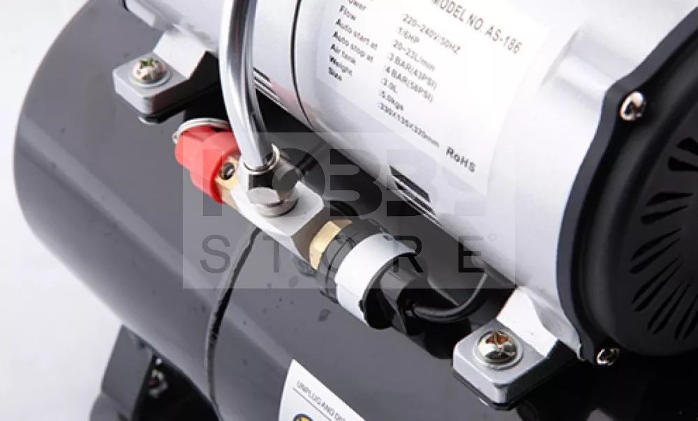 Az AS-186 típusú egy hengeres mini airbrush kompresszor, 0,2-1 mm-es fúvókákkal ellátott szórópisztolyok használatához kifejezetten alkalmas.