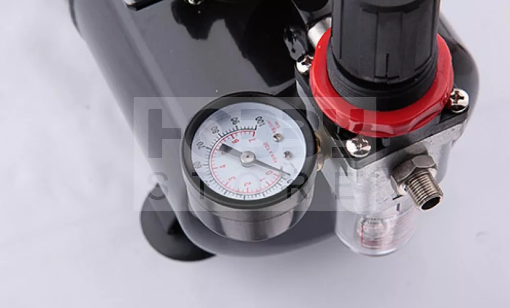 Single piston, oil-free mini compressor, suitable for airbrush spray pistols with the nozzle 0.2mm-1mm, and the output pressure regulator (with the filter and pressure gauge)