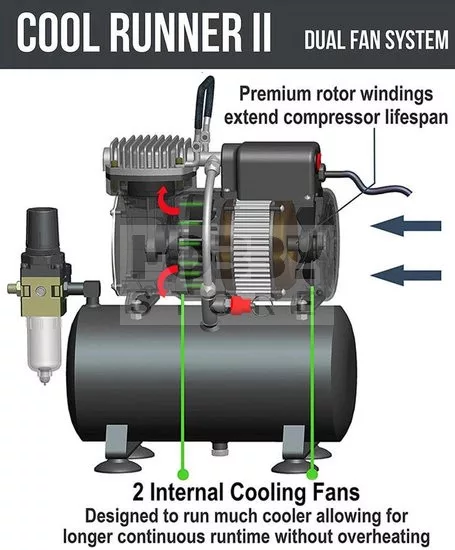 Airgoo Premium Aibrush Compressor AG-326 with Twin Cooling Fans and Air Tank