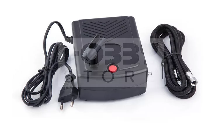 Egy dugattyús olajmentes mini kompresszor airbrush (szórópisztoly) technikákhoz. A kompresszor nagyon népszerű a makettezők, műkörömépítők és a testfestők körében.