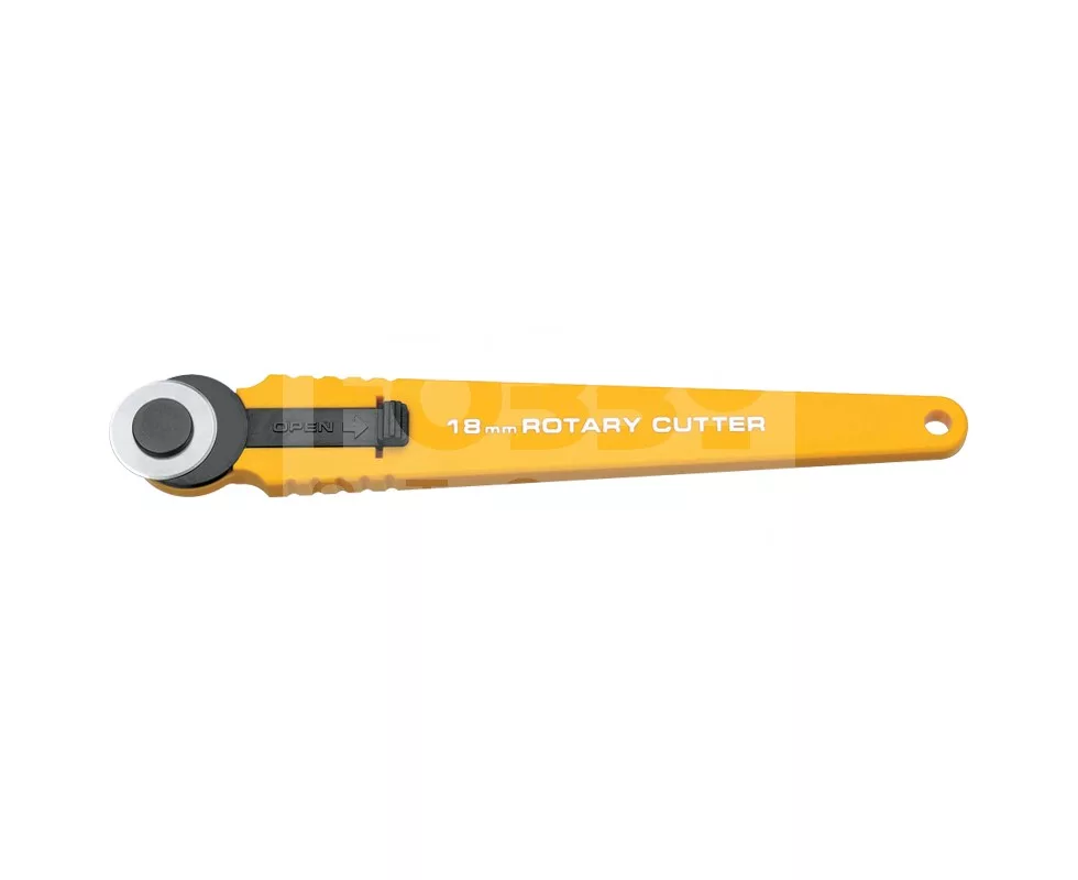 Hobby rotary cutter with an 18mm stainless steel rotary blade. Accommodates both right- and left-handed users.