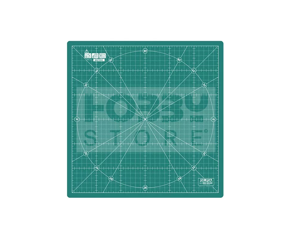 OLFA RM-30x30 - Forgatható vágóalátét. 30 x 30 cm-es, 360 fokban forgatható speciális két rétegű "öngyógyuló" vágólap. A centiméter beosztású vágóalátéten a leggyakoribb szögbeosztások is jelölve vannak. Egyaránt használható körpengés foltvarró "patchwork", 9 mm-es standard és dekorációs késekkel.