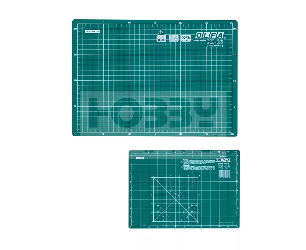 OLFA A4-es méretű speciális három rétegű öngyógyuló vágólap. A vágóalátét egyik oldala inch, másik oldala centiméter beosztású, valamint a leggyakrabban használt szögek is jelölve vannak rajt. Egyaránt használható körpengés foltvarró "patchwork", 9 mm-es standard és dekorációs késekkel.