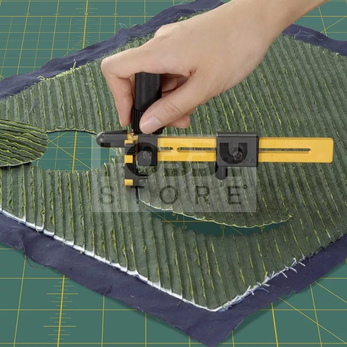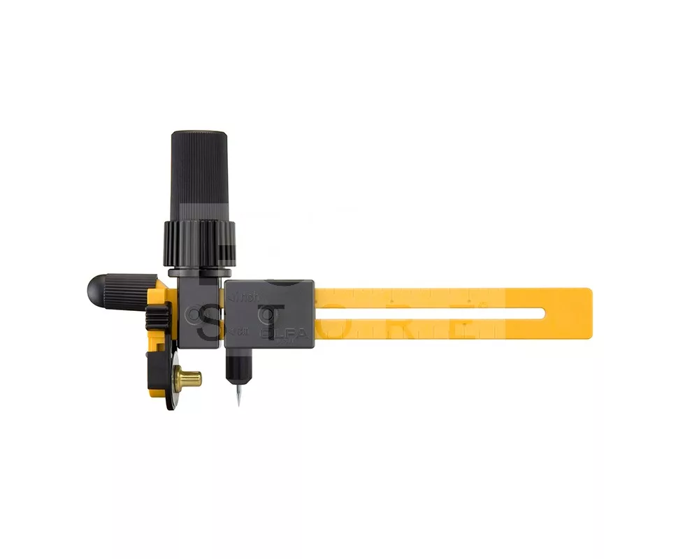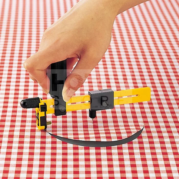 Rotary compass cutter with an 18mm stainless steel rotary blade. Perfect for cutting fabric circles in diameter from 4cm to 22cm. Unique ratchet handle is simple and easy to use and greatly reduces wrist fatigue. Designed for both right- and left-handed use.
