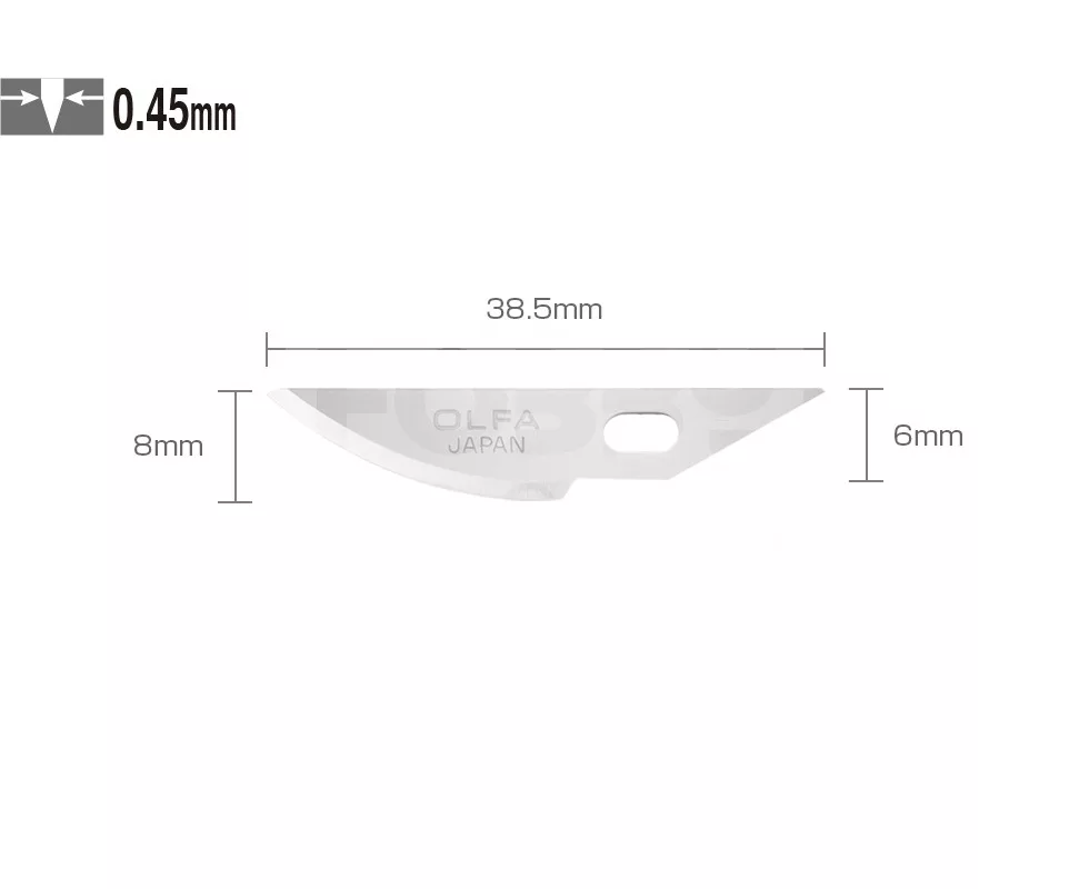 5 curved carving blades for professional art knife in a plastic case. Packed in a plastic bag.