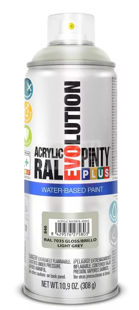 PINTYPLUS EVOLUTION VIZES BÁZISÚ AKRIL SPRAY- VILÁGOSSZÜRKE- RAL7035 (LIGHT GREY) 400ML - PP846
