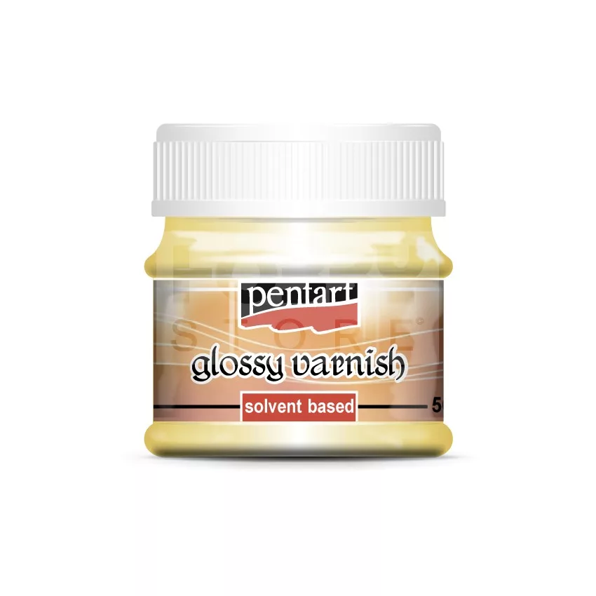 A Pentart oldószeres, színtelen fényes lakk gyorsan száradó fedőlakk, amely fényes, vízálló védőréteget alkot különféle felületeken. Kiváló választás dekorációs megoldásokhoz, különösen decoupage és repesztő technikákhoz, ahol tükröző hatás vagy antik stílusú bevonat kívánatos.