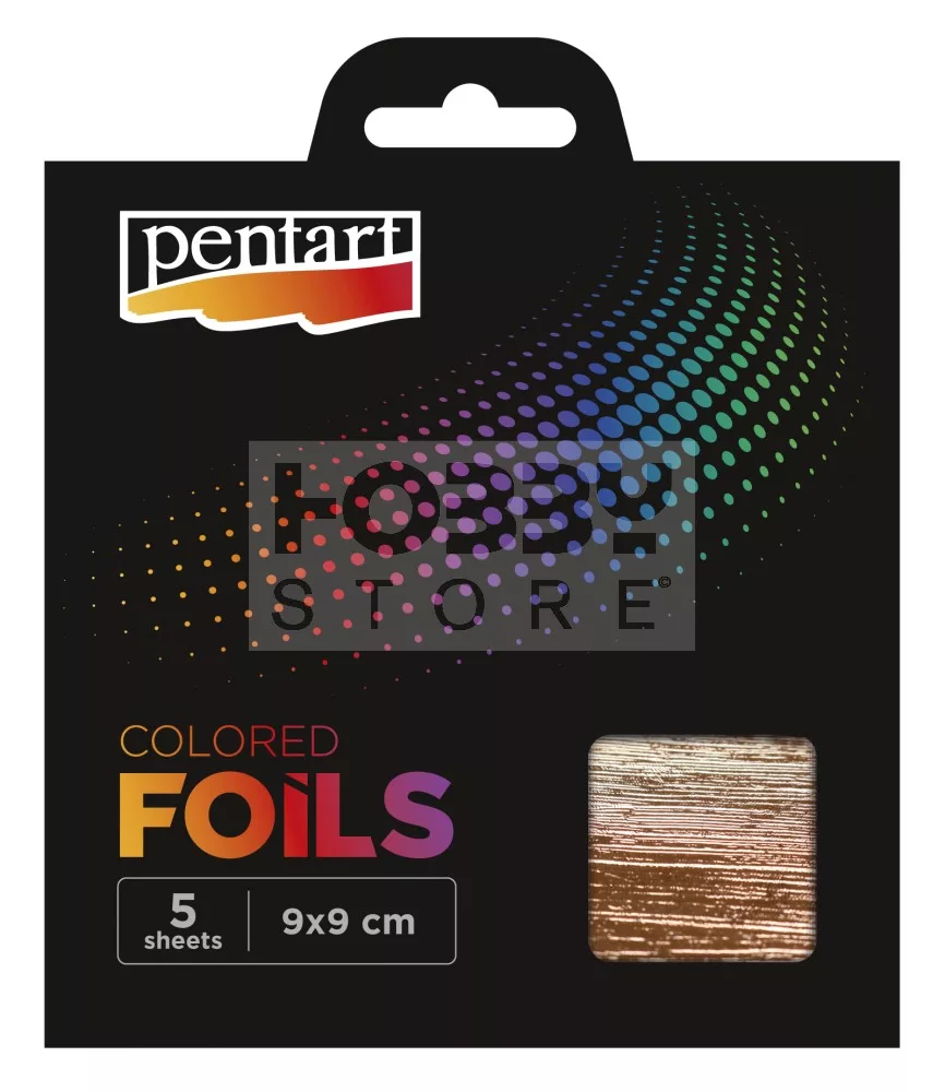 Pentart - Színes fólia lap 9x9 cm 5 lap/csomag rózsaarany 40119