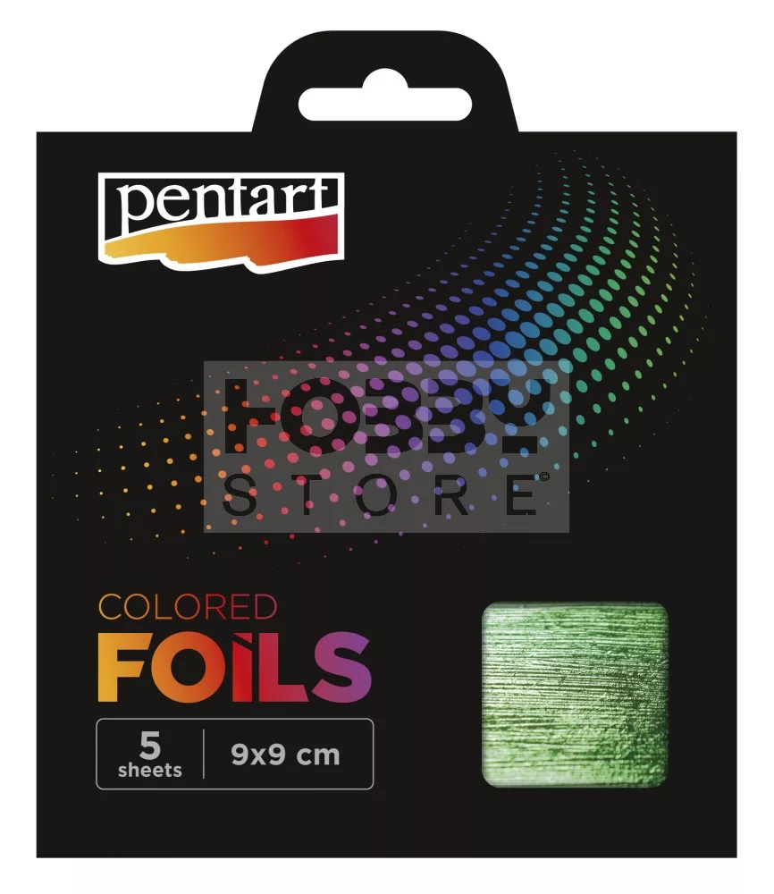 Pentart - Színes fólia lap 9x9 cm 5 lap/csomag zöld 40117