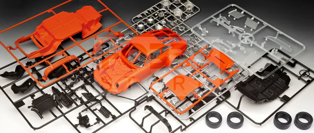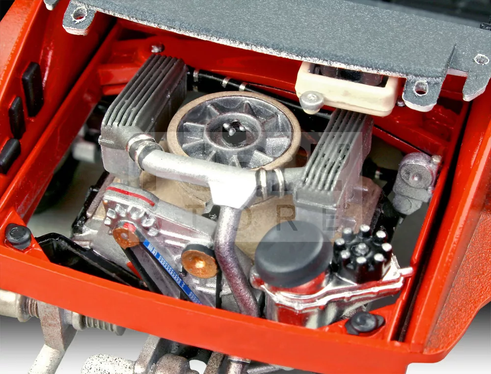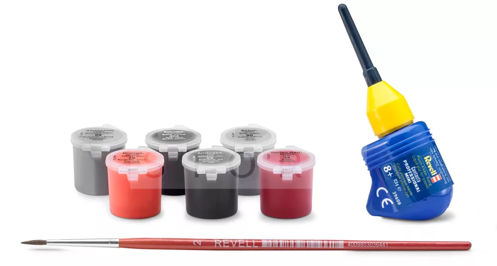 Festést és ragasztást igénylő műanyag makett. A készlet az alap színeket (Revell Aqua Color), ragasztót illetve ecsetet tartalmaz.
