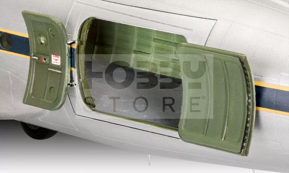 Festést és ragasztást igénylő műanyag makett. A készlet az alap színeket (Revell Aqua Color), ragasztót illetve ecsetet tartalmaz.