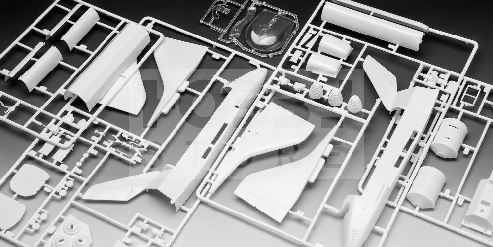 Festést és ragasztást igénylő műanyag makett. A készlet az alap színeket (Revell Aqua Color), ragasztót illetve ecsetet tartalmaz.