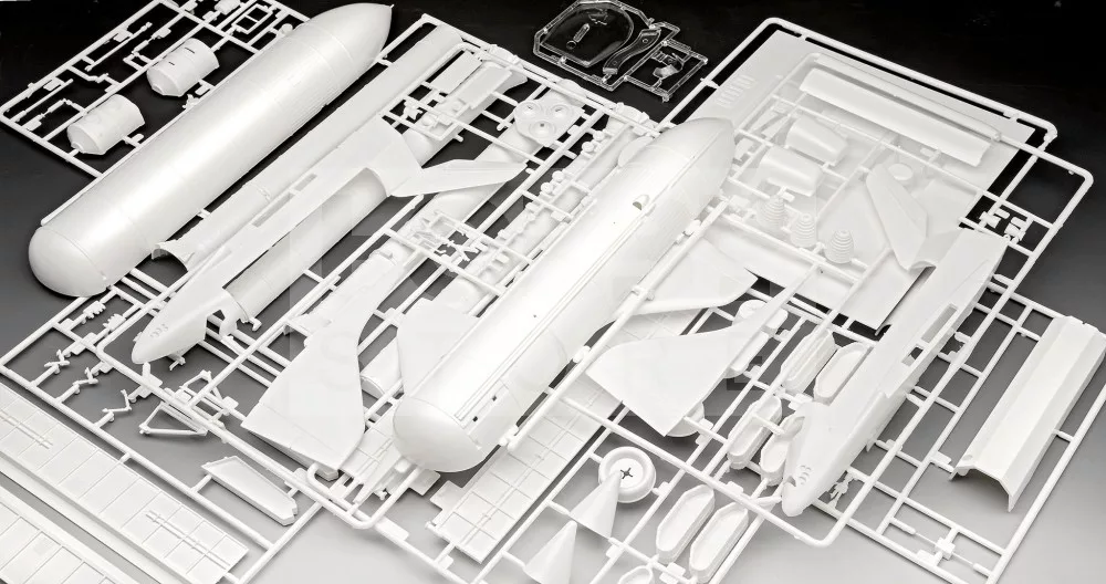 Festést és ragasztást igénylő műanyag makett. A készlet az alap színeket (Revell Aqua Color), ragasztót illetve ecsetet tartalmaz.