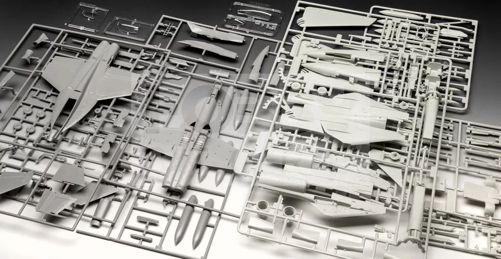 Festést és ragasztást igénylő műanyag makett. A készlet az alap színeket (Revell Aqua Color), ragasztót illetve ecsetet tartalmaz.