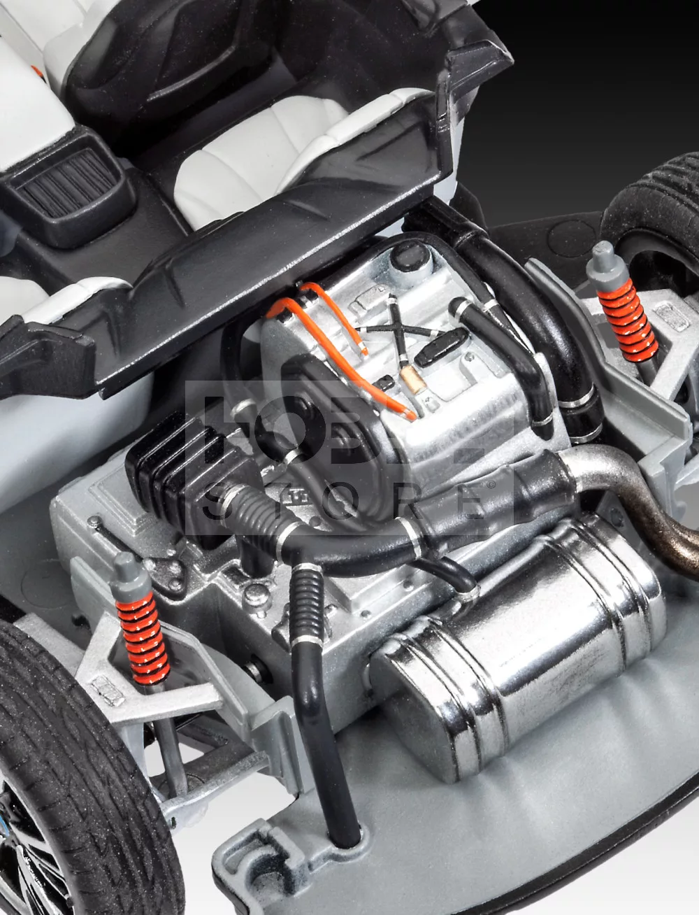 Festést és ragasztást igénylő műanyag makett. A készlet az alap színeket (Revell Aqua Color), ragasztót illetve ecsetet tartalmaz.