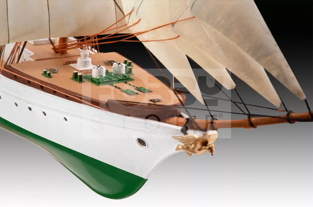 Festést és ragasztást igénylő műanyag makett. A készlet az alap színeket (Revell Aqua Color), ragasztót illetve ecsetet tartalmaz.