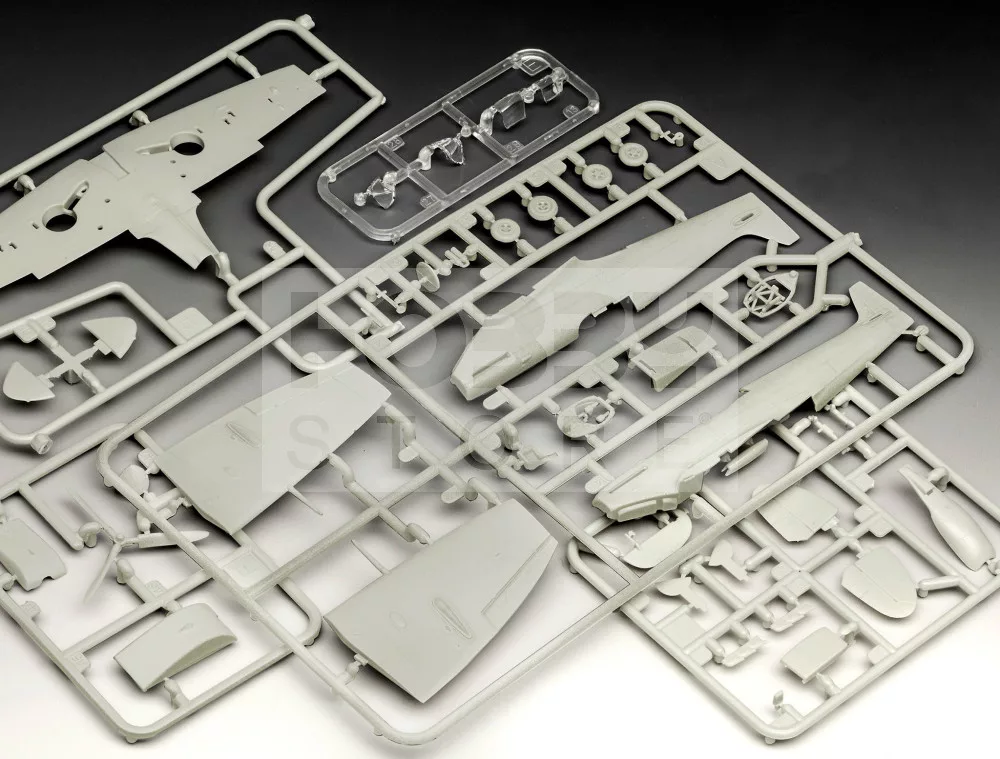 Festést és ragasztást igénylő műanyag makett. A készlet az alap színeket (Revell Aqua Color), ragasztót illetve ecsetet tartalmaz.