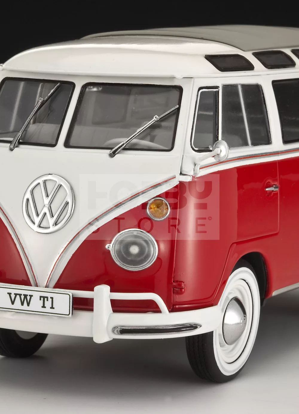 Festést és ragasztást igénylő műanyag makett. A készlet az alap színeket (Revell Aqua Color), ragasztót illetve ecsetet tartalmaz.