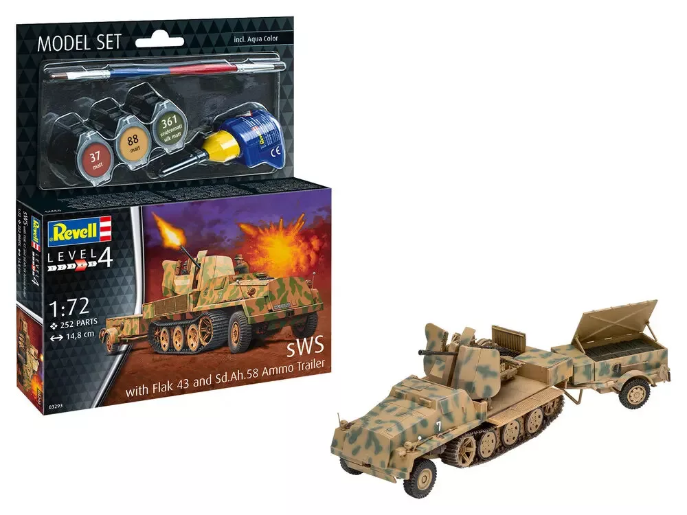 Revell Model Set sWS with Flak43 and Sd.Ah58 Ammo Trailer 1:72 harcjármű makett 63293R