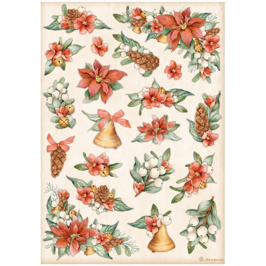 Stamperia A4 rizspapír csom.- All Around Christmas poinsettia and bellst - DFSA4806