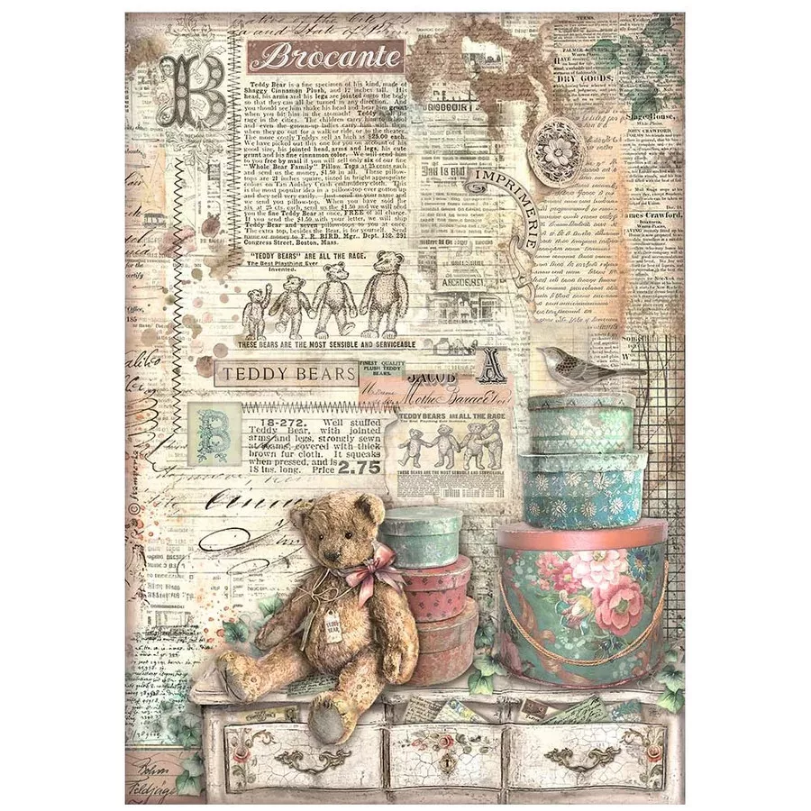 Stamperia A4 rizspapír csom.-  Brocante Antiques teddy bears - DFSA4854