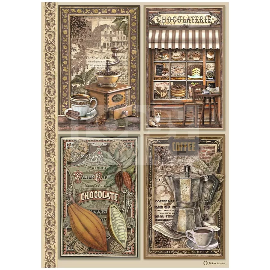 Stamperia A4 rizspapír csom.-  Coffee and Chocolate 4 cards - DFSA4821