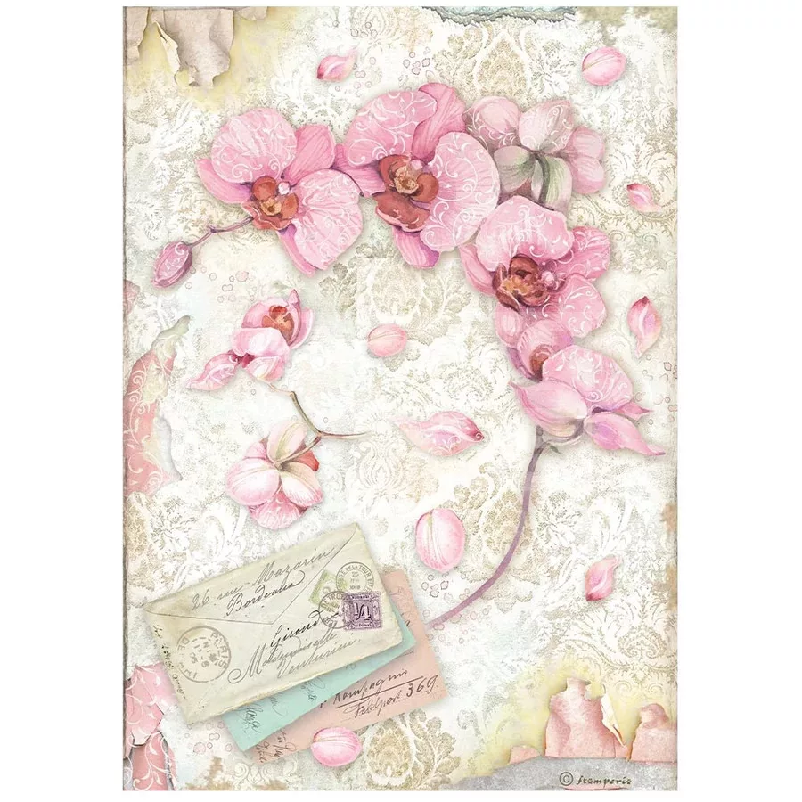 Stamperia A4 rizspapír csom.-  Orchids and Cats pink orchid - DFSA4847