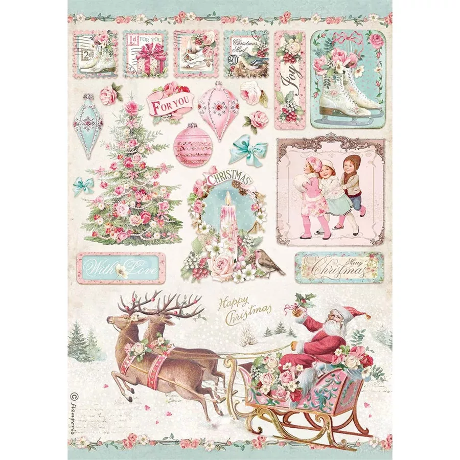 Stamperia A4 rizspapír csom.- Pink Karácsonyi szán - DFSA4628