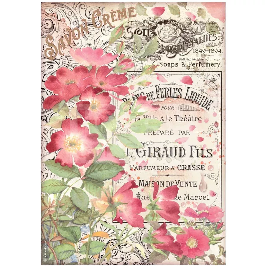Stamperia A4 rizspapír csom.- Rose Parfum Savon créme - DFSA4736