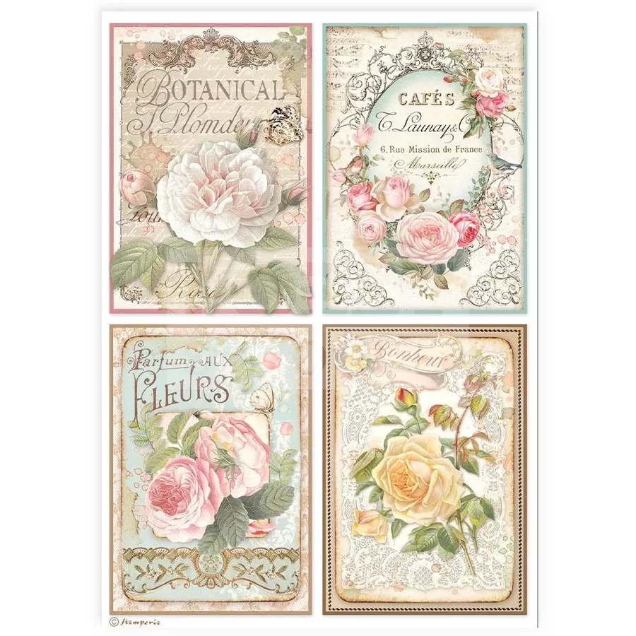 Stamperia A4 rizspapír csom.- Rózsás kártyák - DFSA4909