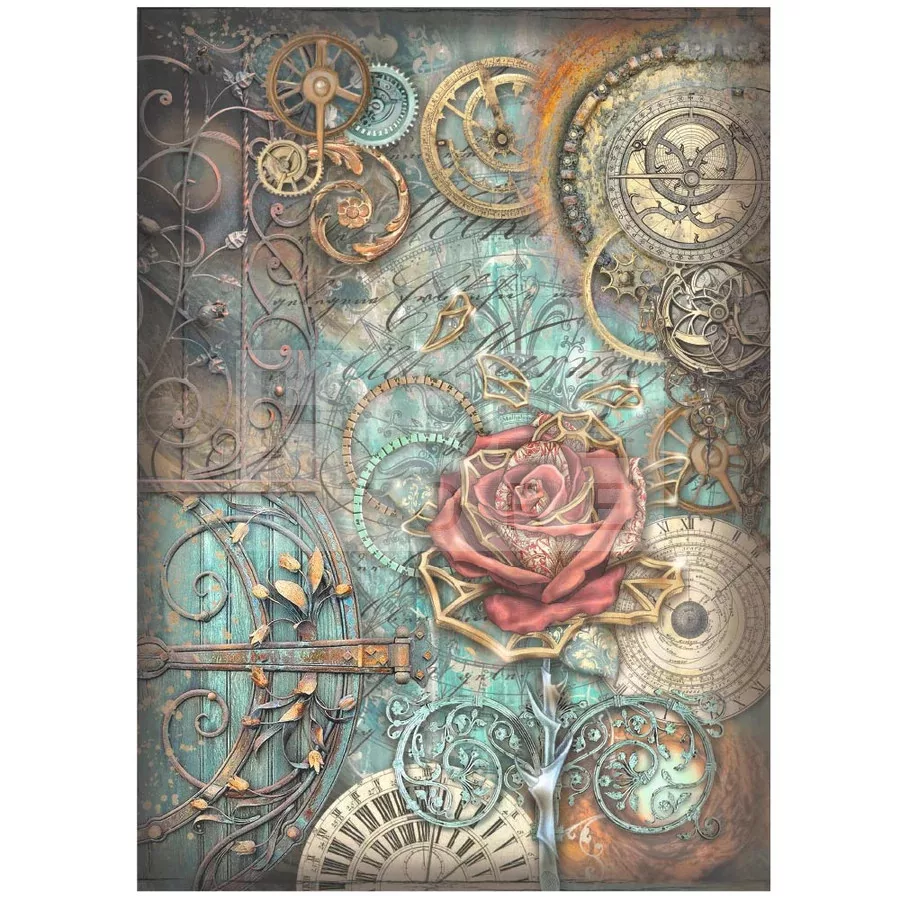 Stamperia A4 rizspapír csom.- Sir Vagabond in Fantasy World mechanical rose - DFSA4841