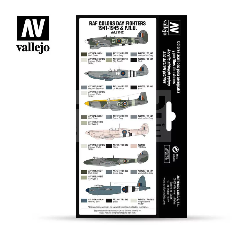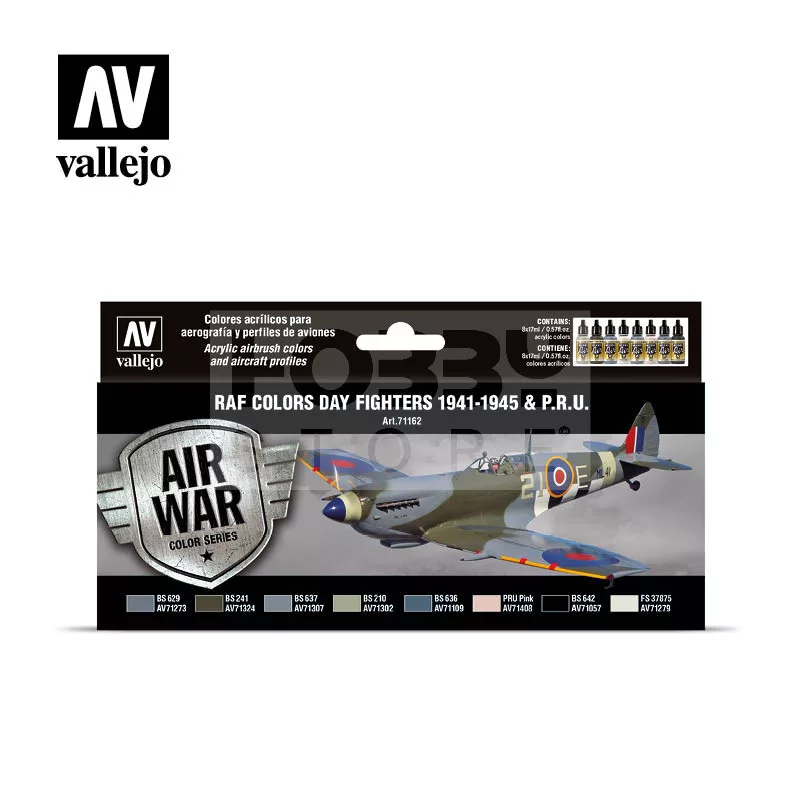 Set of Model Air colors developed for painting the RAF Day Fighter aircraft from August 1941 until the end of the War, as well as the HF Interceptors (High Fighters). The set also includes colors for the PRU (Photographic Reconnaissance Unit) aircraft.