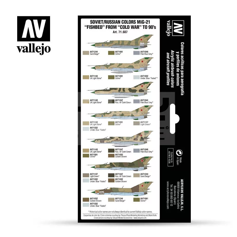Vallejo Model Air - Soviet-Russian colors MiG-21 “Fishbed” from 50’s to 90’s - festékszett 71607