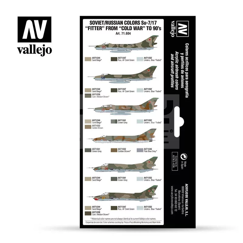 Vallejo Model Air -Soviet/Russian colors Su-7/17 “Fitter” from “Cold War” to 90’s - festékszett 71604