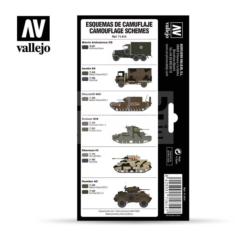 The set includes all the references needed to paint any type of British army vehicles, used between 1939 and 1945, beginning with the forces stationed in British territory, the Expeditionary forces in France and the forces in Italy and on the European front. To determine the colors of this set we have been assisted by the expert Mike Starmer.