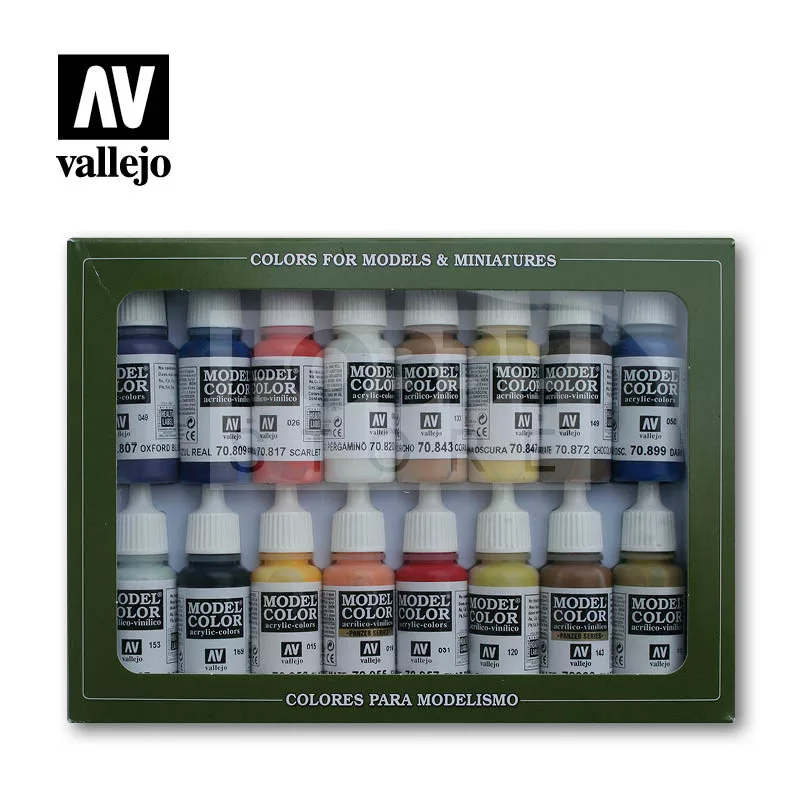 Vallejo Model Color festékeket tartalmazó szett. Tökéletesek Wargame és társasjáték figurák valamint makettek festéséhez.