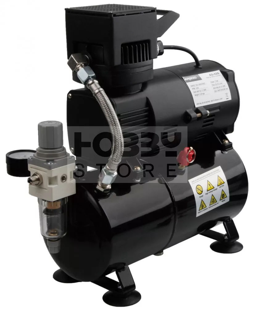 Az AG-320 típusú egy hengeres mini airbrush kompresszor, 0,2-1 mm-es fúvókákkal ellátott szórópisztolyok használatához kifejezetten alkalmas.