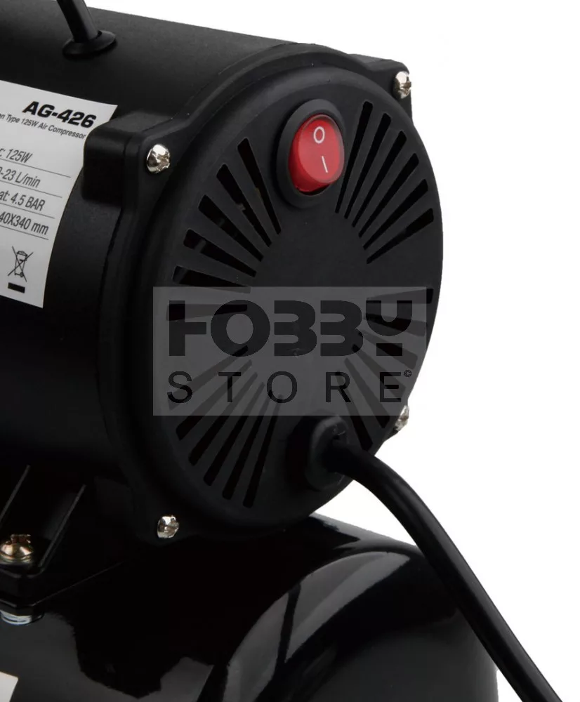 Egy dugattyús olajmentes mini kompresszor airbrush (szórópisztoly) technikákhoz. A Fengda AG-426 mini csendes kompresszor rendelkezik egy kimeneti nyomásszabályzóval ami levegőszűrővel és és nyomásmérő órával van ellátva. A nyomásszabályzó leeresztő szelleppel is el van látva. Csendes (47 dB / 1m), így lakótérben is használható kényelmesen. Kis súlyának köszönhetően könnyen hordozható. A kompresszor nagyon népszerű a makettezők, műkörömépítők és a testfestők körében.