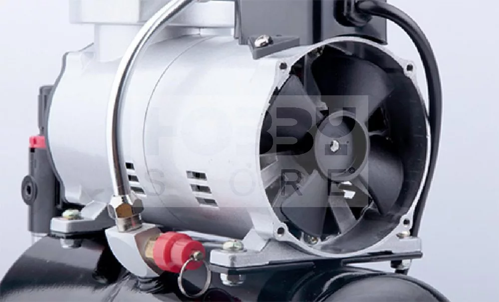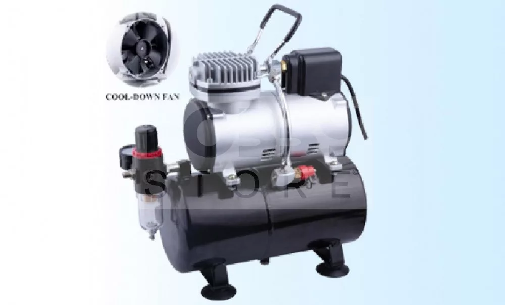 Egy dugattyús olajmentes mini kompresszor airbrush (szórópisztoly) technikákhoz. A Chromax AS-186S mini csendes-levegőtartályos kompresszor rendelkezik egy kimeneti nyomásszabályzóval ami levegőszűrővel és és nyomásmérő órával van ellátva.Termikusan védett plus ventillátorral. A nyomásszabályzó leeresztő szelleppel is el van látva. Csendes (47 dB / 1m), így lakótérben is használható kényelmesen. Kis súlyának köszönhetően könnyen hordozható. A kompresszor nagyon népszerű a makettezők, műkörömépítők és a testfestők körében.