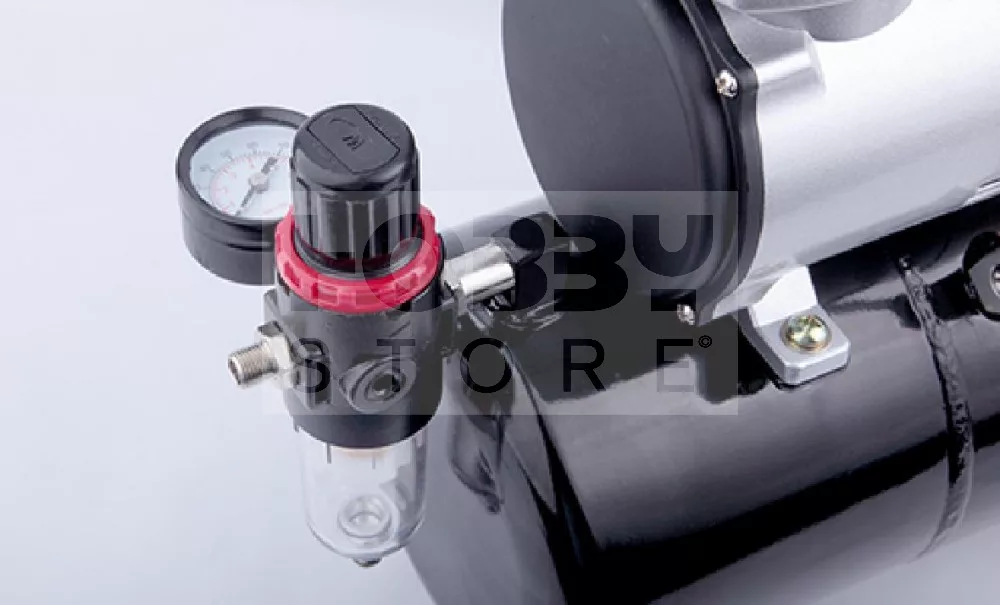 Single piston, oil-free mini compressor, suitable for airbrush spray pistols with the nozzle 0.2mm-1mm, and the output pressure regulator (with the filter and pressure gauge)