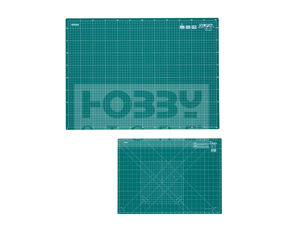 OLFA A2-es méretű speciális három rétegű öngyógyuló vágólap. A vágóalátét egyik oldala inch, másik oldala centiméter beosztású, valamint a leggyakrabban használt szögek is jelölve vannak rajt. Egyaránt használható körpengés foltvarró "patchwork", 9 mm-es standard és dekorációs késekkel.